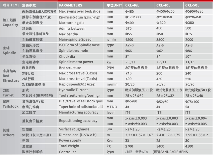 CXL-40L/46L/50L数控卧式车床是结合我厂多年设计的经验,顺应市场及发展需求而设计、生产的全新产品。